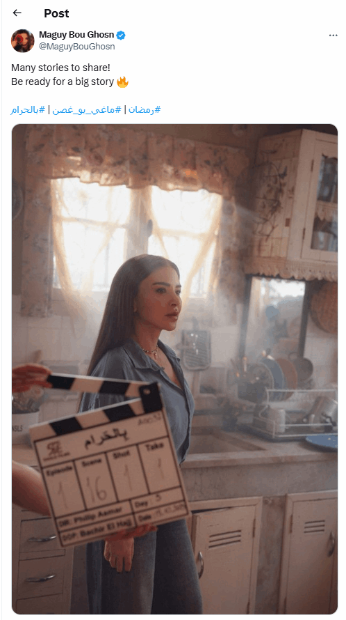 مع انطلاق عجلة التصوير لمسلسل “بالحرام” نشرت بطلته ماغي بو غصن صورا من كواليس العمل الرمضاني المرتقب، والذي تجسد فيه شخصية “جود”. وهو من إنتاج شركة “إيغل فيلمز” للمنتج جمال سنان، وتأليف فادي حسين وشادي كيوان، وإخراج فيليب أسمر.