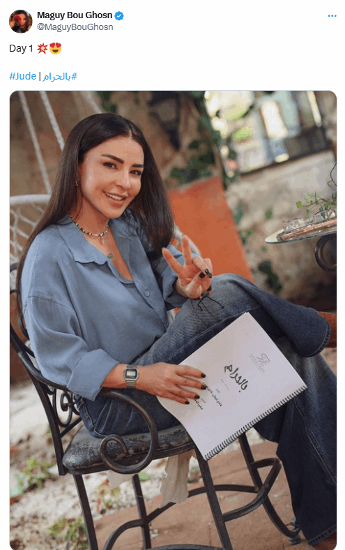 وشاركت بو غصن صورة من “اليوم الأول” من التصوير عبر منصة “إكس”، ظهرت فيها حاملةً سيناريو العمل مع علامة النصر، في اشارة تفاؤلية حول نجاح المساسل المنتظر، اثر نجاحات حققتها الأعوام الماضية من خلال مسلسلات “للموت” و”ع أمل” و”بالدم”..