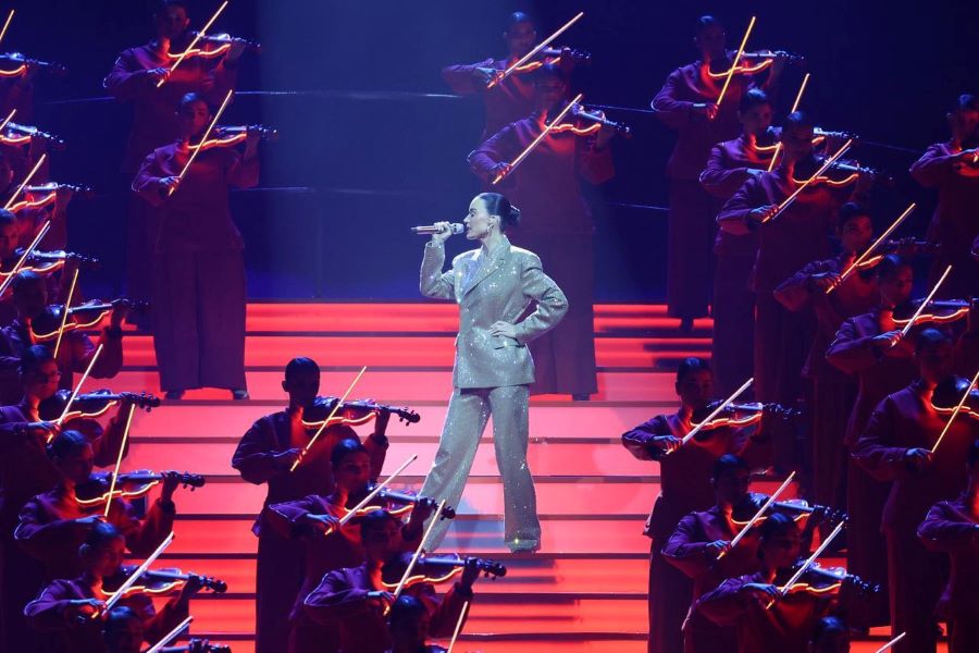 افتتحت الأمسية بمشاركة المغنية العالمية “كايتي بيري” ضمن فقرة تمهيدية مميزة شكلت تجربة بصرية فريدة، وجمعت عناصر الأوركسترا والراقصين والمؤثرات الخاصة، في لوحة فنية متكاملة اعتمدت على الإضاءة الديناميكية والمؤثرات البصرية والحضور المسرحي اللافت، بما عكس ضخامة الإنتاج ودقة الإعداد لهذه الليلة.